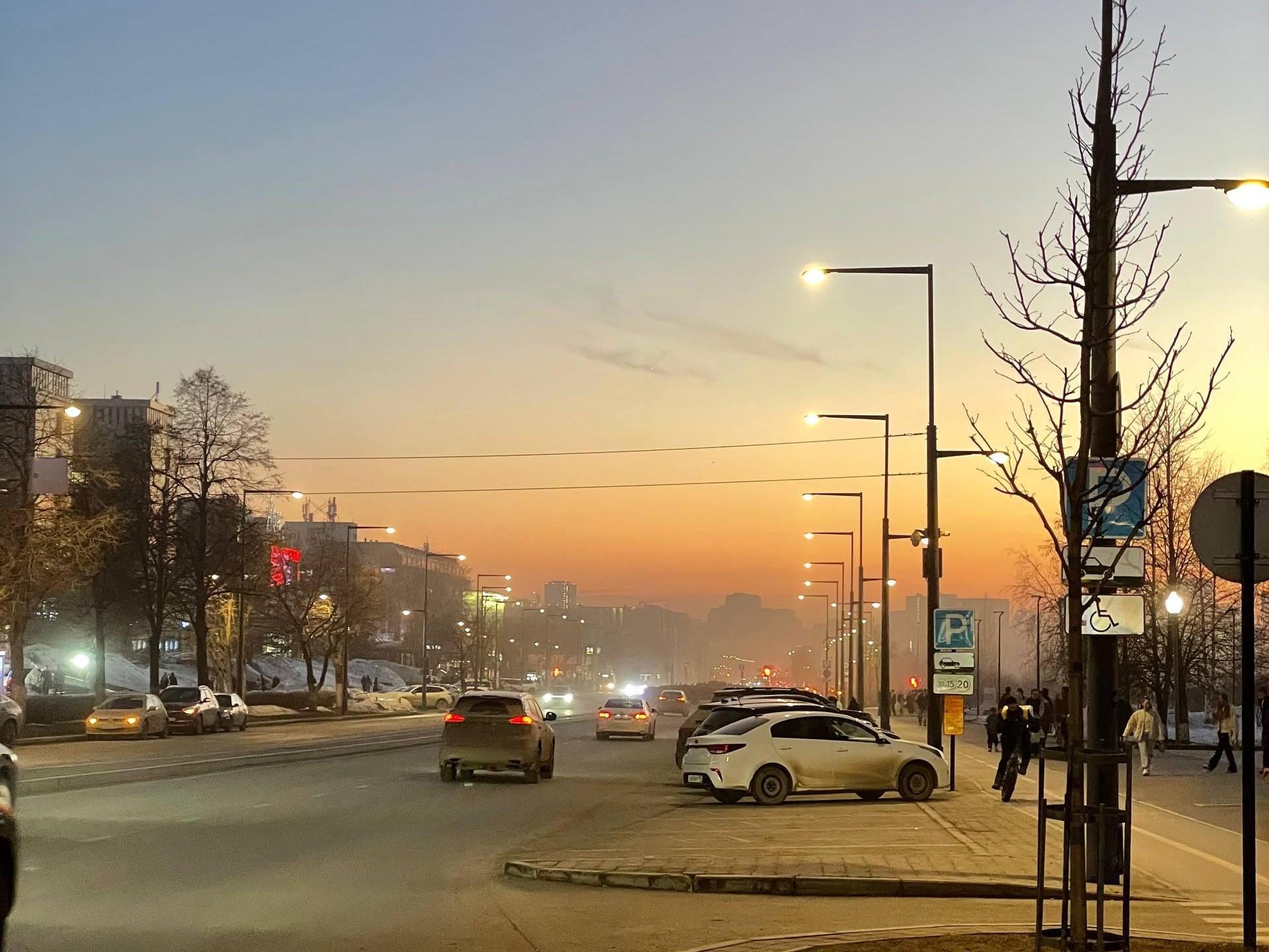 Весна в Перми в этом году выдалась необычно теплой, что спровоцировало быстрое исчезновение снежного покрова. После его схода на проезжих частях и пешеходных зонах образовался значительный слой грязи и пыли, который теперь поднимается в воздух, создавая над городом густую дымку.