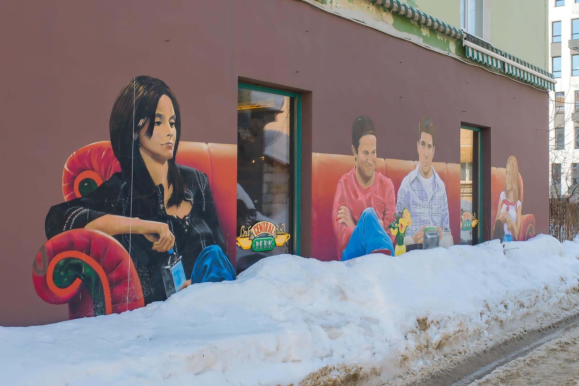 Граффити с персонажами сериала «Друзья» на стене бывшей кофейни Central Perk в Перми сохранится, пока не начнётся капитальный ремонт фасада. Дальнейшая судьба рисунка будет зависеть от объёма работ.